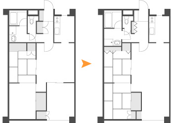 無駄な空間が多かったトイレをコンパクトにし、トイレ前の廊下を人がすれ違えるくらい広くして、動きやすくしました。